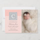 Mit dieser einfachen, eleganten und schicken Monogramm-Blockankündigung kündigen Sie Ihre kleine Ankunft an. Personalisieren Sie Ihre Lieblings-Foto und die Informationen Ihres Babys. Hellrosa, platingrau und weiß.