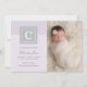 Mit dieser einfachen, eleganten und schicken Monogramm-Blockankündigung kündigen Sie Ihre kleine Ankunft an. Personalisieren Sie Ihre Lieblings-Foto und die Informationen Ihres Babys. Leichte Lavendel lila, violett, platingrau und weiß.