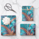 Elegantes Lila Aquamarines Feather-Fraktal Geschenkpapier Set