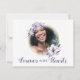 Eine wunderschöne doppelseitige Begräbniskarte, die Sie an Freunde und Verwandte schicken können, die Ihnen Liebe und Freundlichkeit während Ihrer Trauerzeit gezeigt haben. Mit lila Aquarell-Blume, ein "mit Liebe und Dank" danke Ihnen Nachricht, ihren Namen und Daten. Auf der Rückseite können Sie ein Foto Ihres Liebsten hochladen, gerahmt in einem goldenen Kranz mit lila Aquarellfloralen und Blattwerk und dem Text "Forever in our Hearts".