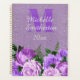 Schöner und eleganter lila Vintager Blumenplaner und Glitzer Silber. Personalisiert mit Ihrem Monogramm/Initial, Ihrem vollen Namen in einem eleganten Script-Schriftart und dem Jahr.