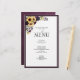 Mit diesem angesagten 5.5"x 8.5" Menü-Design mit einem Blumenstrauß aus reichhaltigem Pflaume, lila Blüte, Sonnenblumen und botanischer Vegetation schaffen Sie den perfekten Empfang-Rahmen. Es ist in Pflaume lila. Personalisieren Sie Ihre Details mit schönen modernen handgeschriebenen Kalligrafien. Ideal für, aber nicht beschränkt auf diesen Garten und Garten Hochzeit. Teil einer Hochzeitssuite, von der wir hoffen, dass Sie so viel Liebe wie wir tun: https://www.zazzle.com/collections/elegant_sunflower_plum_purple_watercolor_script-119479724198769053 Copyright Anastasia Surridge für Elegant Invites, alle Rechte vorbehalten.