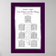 Fügen Sie dem eleganten Design Ihre eigene Touch hinzu, die moderne Schrift, lila und schwarze Schrift inklusive einem sternensilbernen Weihnachtsbaum mit einem silbernen Metallrahmen mit lila Hintergrund umfasst. In diesem Sitzplan finden Sie die Namen der Braut und des Bräutigams sowie die Worte "Essen, Trinken und Vergnügen" und "Bitte suchen Sie Ihren Sitzplatz". Vorlagen sind für bis zu sieben Tabellen mit bis zu 8 oder 9 Namen pro Tabelle vorgesehen.