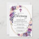 Elegantes Lila Rosa Floral Gold Rahmen Christening Einladung