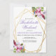 Weich rosa und lila tropische Aquarellfarben Blume in einem doppelgeometrischen Rahmen mit botanischen und festlichen Schnörkeln. Passen Sie diese bachelorette Wochenende-Einladung mit Ihren eigenen Farben und Schriftart an oder behielt diese beliebte Typografie, wie es für Sie ist. MIx und mit anderen Gegenständen in dieser schönen Hochzeitskollektion.