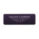Dieses Rücksendeetikett verfügt über ein anspruchsvolles und elegantes Design mit einem tiefpurpurfarbenen Hintergrund, der Luxus ausstrahlt. Das Layout ist sauber und zentriert und zeigt eine fette Serifenschrift für eine formelle Note. Der minimalistische Stil konzentriert sich auf die wesentlichen Informationen ohne zusätzliche Grafiken und schafft so ein gepflegtes und professionelles Aussehen, das perfekt für besondere Anlässe oder offizielle Korrespondenz geeignet ist.
