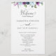 Elegantes Hochzeitsprogramm mit zarten Aquarellfarben, Blumendetails auf einer schönen Mischung aus Blau, Violett und lila Farbtönen. Moderne handgeschriebene Kalligrafieelemente. Möglichkeit, Textänderungen und Anpassungen durch Auswahl weiterer Anpassungen vorzunehmen. Front mit den Details der Hochzeitsfeier, zurück mit den Namen der Hochzeitsfeier und danke Ihnen für die Nachricht für Ihre Gäste. Elegantes modernes Ambiente. Teil unserer Kollektion "Lila und blaue Blüten" mit einer Vielzahl von Produkten zur Koordination. Die gesamte Sammlung finden Sie unter: https://www.zazzle.com/collections/purple_and_blue_blossoms_collection-119752419948427787