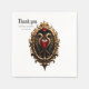 Elegantes luxuriöses Herzemblem. Das Design zeichnet sich durch einen verzierten, gewölbten goldfarbenen Rahmen mit einem roten Farbverlauf aus. Der Rahmen ist sehr detailliert mit barocken Schnörkeln. Von der Spitze des Bogens hängen zarte goldene Ketten mit Teardrop Anhängern. In der unteren Mitte zeigt ein kleinerer, ähnlich gestalteter goldener Rahmen ein rotes Herzemblem, flankiert von geflügelten Schlangen. Die Stimmung ist luxuriös und dekorativ.