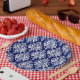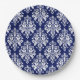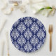Elegantes Marine-Blau-und Weiß-Damast-Muster Pappteller