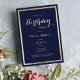 Elegante stilvolle, moderne marineblau-blaue und goldene Geburtstagsparty.Diese schicke, moderne marineblaue Geburtstagsparty lädt zu individuellen Party Einladungen ein. Dieses Design eignet sich perfekt für das trendige und stilvolle Party-Event. Passen Sie dieses Design mit Ihren eigenen Nachrichten und personalisierten Informationen an. Alle Designs sind gedruckt.