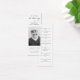 Mit unseren Memorial Gebet Beerdigung Beileid Foto Lesezeichen Cards erstellen Sie einen sinnvollen Sake. Diese Karten sind so konzipiert, dass sie das Gedächtnis Ihrer Lieben ehren und in dieser schwierigen Zeit Komfort bieten. Jedes Lesezeichen verfügt über ein personalisiertes Foto, mit dem Sie einen besonderen Augenblick präsentieren können, der ihren Geist einfängt. Das Design ist modern und elegant, mit einem Raum für ein herzliches Gebet oder eine Botschaft auf der Rückseite. Diese Lesezeichen-Karten dienen als durchdachte und praktische Tribut, indem sie den Empfängern Trost und Unterstützung bieten. Ob als Gedenkgrube oder beim Beerdigungsdienst verteilt, diese Karten werden eine hochgeschätzte Erinnerung des Lebens Ihres Geliebten und der Auswirkungen auf andere sein.