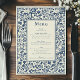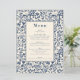 Elegantes Menü mit Blau und Creme mit botanischem Menükarte
