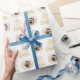 Frohe Weihnachts Gold Foto Wrapping Paper. Ein festliches Weihnachtswrapping Paper mit Ihrem Foto in Weihnachten Gold Kranz. Die spielerische Typbehandlung ist wie ein Weihnachtsbaum geformt.