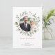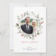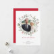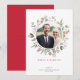 Diese elegante und festliche Urlaubskarte bietet einen wunderschönen Aquarellkranz mit Heiligen, Eukalyptus und Beeren auf klassisch weißem Hintergrund. Das ausgeschnittene Foto ist rund. Der bearbeitbare Gruß auf der Vorderseite sagt "MERRY & VERHEIRATET". Die Rückseite der Karte ist eine festliche rote Farbe. Sie können auch ein anderes Foto und/oder einen zusätzlichen Text auf der Rückseite hinzufügen. Die Hintergrundfarben und Textfarben sind individuell einstellbar.