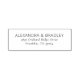 Diese elegante Gummidruckerei verfügt über ein sauberes, minimalistisches Design mit zentriertem Text auf weißem Hintergrund. Die schwarz-weiße Farbpalette verbessert die Lesbarkeit, während die Serifenschrift einen Hauch von Raffinesse verleiht und sie perfekt für formelle Mitteilungen oder offizielle Dokumente macht. Das geradlinige Layout sorgt für Klarheit und Präzision, ideal zum Personalisieren von Umschlägen oder Paketen mit Ihren Adressinformationen.