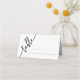 Elegante und moderne Platzkarten für das Abendessen in der Probe mit der Phrase "Table" in fließendem Drehbuch entlang der Seite. Das gepflegte Schwarz-Weiß-Design hebt den Ort hervor, an dem man die Tischnummer und den Namen des Gastes betreten kann, wodurch ein elegantes Aussehen entsteht, das perfekt für eine Hochzeitsfeier geeignet ist.