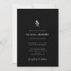Schwarze Hochzeitseinladung mit Foto auf der Rückseite bietet eine kühne, moderne Ästhetik, die perfekt für feierliche Hochzeiten im Abend, für hochklassige Veranstaltungen mit schwarzer Krawatte oder für schlichte Minimalisten-Zeremonien geeignet ist. Die Vorderseite zeigt einen schwarzen Hintergrund mit auffallendem Weißtext in einem eleganten Serif- und Cursiv-Script-Schriftart, gepaart mit einer zarten botanischen Abbildung, die ein subtiles Bio Detail hinzufügt. Dieses Kontrast-Design schafft einen luxuriösen und dramatischen Stil und eignet sich ideal für Hochzeiten in der Stadt, für moderne Veranstaltungen oder Winterfeiern mit einer raffinierten Farbpalette. Auf der Rückseite des Hotels befindet sich ein individuelles Foto, in dem Paare ein Lieblingsbild der Verlobung oder ein romantisches Portrait darstellen können, das eine zutiefst persönliche und unvergessliche Touch verleiht. Mit übersichtlich strukturiertem Text ist diese bearbeitbare zweiseitige Vorlage sowohl stilvoll als auch leicht zu personalisieren. Sein elegantes, berufliches Aussehen sorgt für Kompatibilität mit monochromen oder metallischen Hochzeitsfarben und macht es zu einer hervorragenden Wahl für Paare, die eine anspruchsvolle Hochzeitseinladung suchen, die moderne Eleganz mit personalisiertem Charme widerspiegelt. Erhältlich als gedruckte Karten oder als sofortiger digitaler Download.