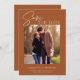 Die elegante, orange Save the Date Ankündigung des Fotos zeichnet sich durch einen modernen Script-Schriftart und ein schlichtes minimalistisches Design aus. Diese einzigartige Save the Date-Karte ist eine trendige Möglichkeit, Ihre Hochzeit anzukündigen. DAS FOTO DER PROBE IST NICHT ENTHALTEN. ERSETZEN SIE DAS FOTO VOR DER BESTELLUNG.