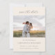Elegante Minimalistische Elfenbeincreme-Kalligrafie Hochzeit Sichern Sie das Datum mit zwei Fotos