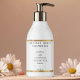 Ein elegantes, minimalistisches Kosmetiklabel mit weißem Hintergrund, schwarzem Text und einem goldenen Imitat.