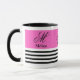 Ein eleganter, minimalistischer, schwarz-weiß gestreifter, klassischer und dramatischer Kalligraphiebrief. Mit dem lebhaften rosa Band, um Ihren Namen zu ändern, ob Sie einen schönen Morgen auf der Zuhause genießen oder durch einen Pleite-Werktag fahren, ist diese Tasse perfekt, um warm und fokussiert bleibe. Exzellentes Geschenk für sich selbst oder ein Geschenk für Freunde und Familie oder für diejenigen, die etwas Einzigartiges suchen.