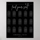 Das elegante schwarze Hochzeitsstempelposter empfängt Sie stilvoll und elegant. Dieses Design mit einem schwarzen Hintergrund, einem knalligen weißen, modernen Skript und einem übersichtlichen Tischlayout verbindet Eleganz und Praxisnähe. Ideal für Schwarz-Krawatte, Moderne oder monochrome Hochzeitsthemen. Anpassen Sie einfach mit Ihren Gastnamen und Tischnummern, um eine personalisierte, koordinierte Empfang-Anzeige zu erstellen. Pair es mit passender Hochzeitsarbeit, Tischnummern und Platzkarten für ein einheitliches Aussehen. Erhältlich in mehreren Größen für Ihren Veranstaltungsort.