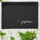 Moderne saubere Schwarz Elegant Minimalistische Feminine Monogram Name Signature Script Custom Personalisiert Kitchen Handtuch. Dieses Design mit Ihrem Vornamen in einem hübschen handgeschriebenen Stil Swash Schwanz Schriftart Signatur Typografie (oder Kalligrafie) weiße Skript auf schwarzen Farbhintergrund. Diese sind einfach zu anpassen. Große stilvolle feminine Hauswärmeschenke, auch zum Geburtstag, Muttertag, Hochzeit, Brautparty und Es ist für das Mädchen, das Lieben einzigartige saubere minimalistische Dinge.