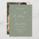 Elegantes Minimalistisches Script Sage Green Foto Einladung