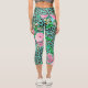 Elegantes Minze Leopard Print und Blumendesign Capri Leggings