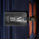Eleganter Mit Monogramm, schwarz gebürsteter, metallischer Gepäckträger.