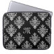 Ein eleganter Laptop-Ärmel aus schwarz-weißem Damast, ideal für Frauen mit klassischer Persönlichkeit. Personalisieren Sie dieses schöne Design, indem Sie Ihre Monogramm Initial. Dies ist Teil der Frühjahrssammlung 2016 der Black Damask Device Essentials.
