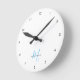 Elegantes Modern White Sky Blue Script Monogram Runde Wanduhr