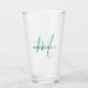 Elegantes, modernes Aquamarines Script Monogram Glas. Ein elegantes aquamarines Skriptmonogramm in Verbindung mit einem sauberen schwarzen San-Serif-Schriftart sorgt für ein zeitgemäßes Aussehen.