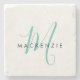 Eleganter moderner Aquamariner Script Monogram Stone Untersetzer. Ein elegantes aquamarines Skriptmonogramm in Verbindung mit einem sauberen schwarzen San-Serif-Schriftart sorgt für ein zeitgemäßes Aussehen.