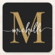 Girly Elegant Moderne Schwarz-Gold Monogram Initial Name Signature Script Custom Personalisiert Square Paper Untersetzer. Dieses Design mit Ihrem Vornamen in einem hübschen handgeschriebenen Stil Swash Schwanz Schriftart Typografie (oder Kalligrafie) mit Monogramm Erstmaligkeit in Gold und Weiß auf Schwarz. Einfach zu anpassen. Große stilvolle feminine Hauswärmeschenke, auch zum Geburtstag, Muttertag, Hochzeit, Brautparty, süße 16 Geburtstagsparty, Babydusche, für Graduiertenfeier und Es ist für das Mädchen, das einzigartige minimalistische Dinge Lieben.