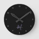 Elegante moderne Black Lavender Script Monogram rund Uhr. Ein elegantes Lavender-Script-Monogramm in Verbindung mit einem weißen San-Serif-Schriftart sorgt für ein zeitgemäßes Aussehen.