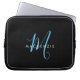 Elegantes, modernes Black Sky Blue Script Monogram Laptopschutzhülle