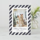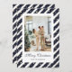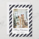 Moderne weiße und blau-weiße Weihnachtskarte mit einem blau-weißen Foto-Rahmen mit Sternen und einem eleganten Script-Schriftart. Personalisieren Sie diese Weihnachtskarte des festlichen Fotos einfach mit Ihrem Foto und Familiennamen.