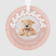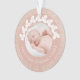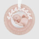 Modernes personalisiertes First Christmas Ornament mit wunderschönem weißen Kranz und Imitaten Kupfer Rose Gold Glitzer Textur. Personalisieren Sie das Produkt mit dem Namen, dem Jahr und zwei Ihrer bevorzugten Foto.