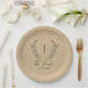Maßgeschneidertes Monogramm und Name mit familiengeführter, eleganter Landhausstil, beige ockerfarbene Einlegepapier-Teller. ++++++ Ein modernes Party-Tischdekor für Hochzeiten, Familienfeiern, Hauswärme, Erntedank, Weihnachten oder andere Veranstaltungen.