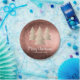 Feiern Sie Weihnachten mit diesem schönen "Frohen Weihnachten"-Design mit drei Imitaten goldenen Weihnachtsbäumen und elegantem Kupferboden.