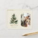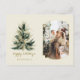 Dieses elegante Urlaubsdesign besticht durch ein einzigartiges Einfoto-Template in ausgeschnittener Form, individuell anpassbaren Gruß und einen modernen Kiefernweihnachtsbaum mit glänzenden goldenen Bausteinen auf steifem Hintergrund.