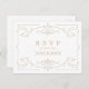Vintage Eleganz verziertes Swirl-Rahmen-Design in goldener Farbe auf bearbeitbarem weißem Hintergrund. Damask-Muster mit Monogramm-Design auf der Rückseite, modern, elegant und elegant, perfekt für Vintage Hochzeit, Art Deko Hochzeit das ganze Jahr über. Editierbare Hintergrundfarbe, um Ihren Hochzeitsmotiven zu entsprechen. Hier finden Sie alle passenden Stücke in dieser Kollektion "Gold Moderne Hochzeit".