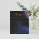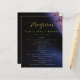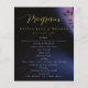 Ein paar Zweige Eukalyptus-Blätter, handgezeichnet in Farbstift und in den Farbtönen staubig und dunkel lila, sorgen für ein modernes, elegantes und dennoch elegantes Hochzeitsprogramm. Der schwarz-dunkelblaue Hintergrund mit lila und hellen Akzenten beleuchtet den Mitternachtshimmel.