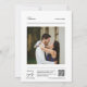 Diese elegante, moderne, minimalistische Hochzeitseinladung verbindet einen serifenlosen Schriftart mit wunderschöner Schriftzeichen-Kalligraphie für die Worte "und" und "Antwort" und verleiht ihm einen zeitlosen und raffinierten Look. Das Design zeichnet sich durch ein personalisiertes Foto des Ehepaares und einen QR-Code aus, der die Gäste zu UAWG- und Veranstaltungsdetails führt, wodurch es zu einer perfekten Kombination aus Stil und Komfort wird. Mit dieser All-in-One-Einladung grün gehen, indem Sie den Bedarf an zusätzlichen UAWG- und Detailkarten reduzieren. Fügen Sie einfach Ihren QR-Code zur Rückseite der Einladung hinzu und teilen Sie essenzielle Hochzeitsinformationen digital mit. Personalisieren Sie die Namen und Formulierungen in wenigen Schritten und personalisieren Sie die Einladung mit Ihrem eigenen Foto für eine einzigartige und sinnvolle Touch. Bitte beachten Sie: Das schöne Schreiben der Wörter "und" und "Antwort" zusammen mit den Zeilen auf der Vorder- und Rückseite und andere grafische Kunstwerkelemente können nicht bearbeitet, verschoben oder gelöscht werden. Sie sind behoben. Wenn Sie die Farbe ändern möchten, können Sie die Einladung einfach an Ihr Hochzeitstil anpassen, indem Sie auf "Einladung anpassen" klicken. Sie können diese Einladung mit Ihrem Text personalisieren und digital über Text, E-Mail oder soziale Medien teilen. Bevorzugen Sie eine traditionelle Touch? Sie haben auch die Möglichkeit, eine gedruckte Version an Ihre Gäste zu schicken - oder beides für zusätzlichen Komfort!