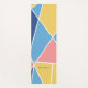 Eine elegante, blau, rosa und gelb geometrisch gestaltete Yoga-Matte. Ein ideales Geschenk für Yogafreunde.