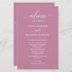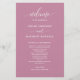 Dieses elegante Hochzeitsprogramm hat einen attraktiven rosa Hintergrund und Text in weiß in einer schönen Kombination aus Blocktypografie und moderner handgeschriebener Kalligraphie. Möglichkeit, Textänderungen und Anpassungen durch Auswahl weiterer Anpassungen vorzunehmen. Front mit Einzelheiten zur Hochzeitsfeier, zurück mit den Namen der Hochzeitsfeier und danke Ihnen für die Nachricht für Ihre Gäste oder jeden anderen Text, den Sie mögen, unser ist nur ein Beispiel. Elegantes, einfaches und anmutiges Ambiente. Teil unserer Kollektion "Mauve Pink Watercolor Botanical Monogram Wedding" mit einer Vielzahl von Produkten zur Koordination, darunter Speisekarte, Tischkarten, Tischnummern und vieles mehr. Besuchen Sie die gesamte Sammlung mit diesem Link: https://www.zazzle.com/collections/mauve_pink_watercolor_elegant_monogram_wedding-119235672549123464
