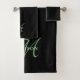 Elegantes, modernes Schwarz-Grün-Script-Monogramm Badhandtuch Set