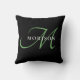 Elegantes, modernes Schwarz-Grün-Script-Monogramm Kissen
