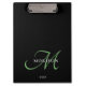 Elegantes, modernes Schwarz-Grün-Script-Monogramm Klemmbrett